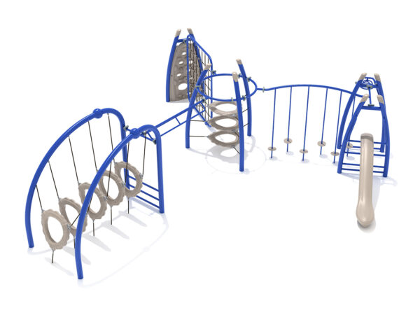 This dynamic structure resembles a futuristic moonbase ready for exploration, designed for installation in school playgrounds or public spaces serving thousands of children over years of active use. The progressive challenge system begins with the five-ring Floating Tunnel Climber where children develop body shuffling techniques before advancing to the Overhead Parallel Bar Climber that demands substantial upper body strength development.