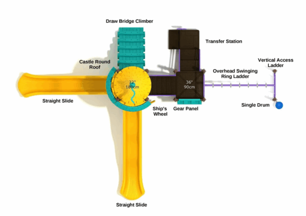 Experience the enchanting Flight of Fairies, a castle-themed playground featuring a single imposing tower crowned with an attractive Round Castle Roof. Despite its single-tower design, this magical structure efficiently packs numerous play elements into its compact footprint.