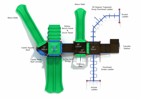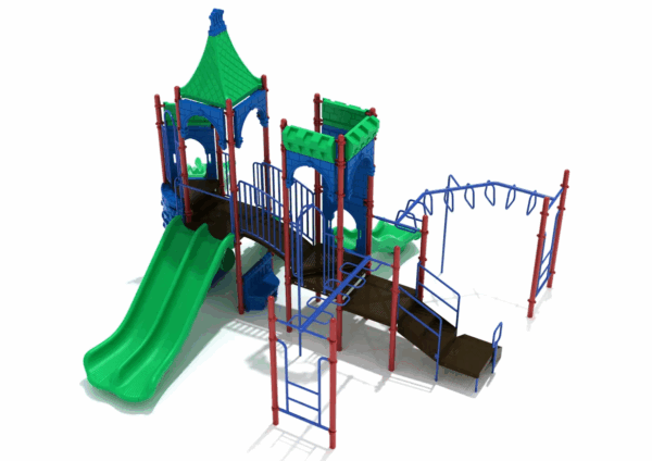 This exceptional fortress demonstrates how combining challenging overhead elements with multiple slides creates irresistible playgrounds, where the impressive appearance matches the thrilling experiences waiting within its walls.