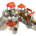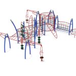 All-in-one obstacle course structure with climbers, spinners, ladders, and floating rope bridges. Accommodates 47 children across multiple age groups while building strength, agility, motor skills, and balance. Perfect for neighborhood playground centerpiece.