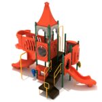 Children can access this paradise through two thoughtfully designed entry points. The inclusive Transfer Station stairs accommodate children of all abilities, including beginners just starting their playground adventures. As confidence builds and excitement grows, the challenging Draw Bridge Climber offers a more advanced climbing experience that helps develop motor skills and physical strength.